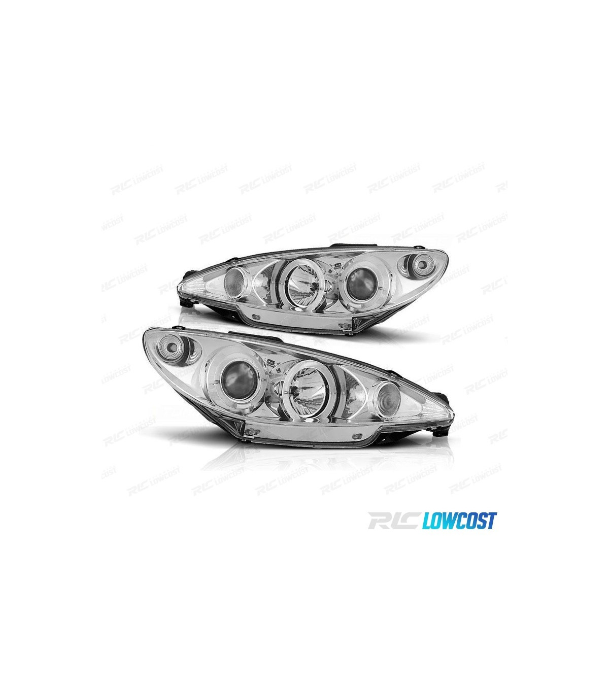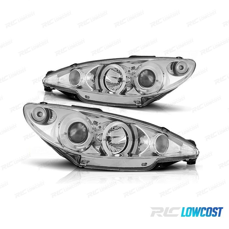 PHARES PEUGEOT 206 98-08 ANGEL EYES CCFL FOND CHROMÉ