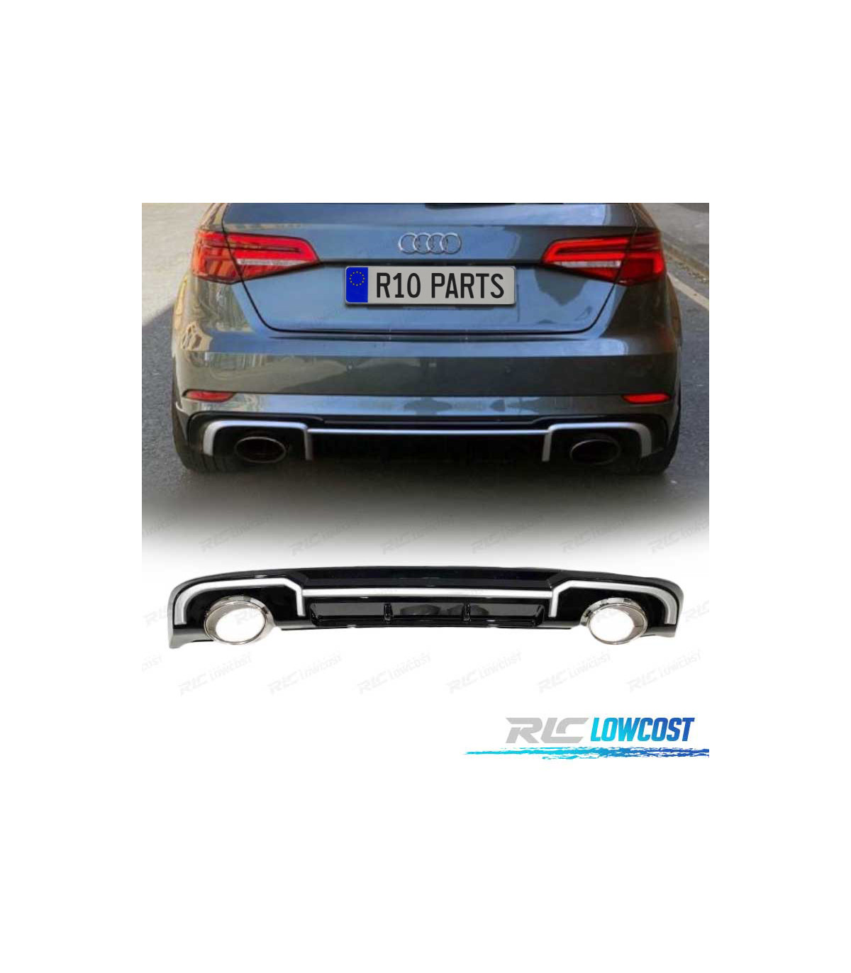 DIFFUSEUR AUDI A3 8V LOOK RS3 SPORTBACK 13-15 + EMBOUTS D´ÉCHAPPEMENT