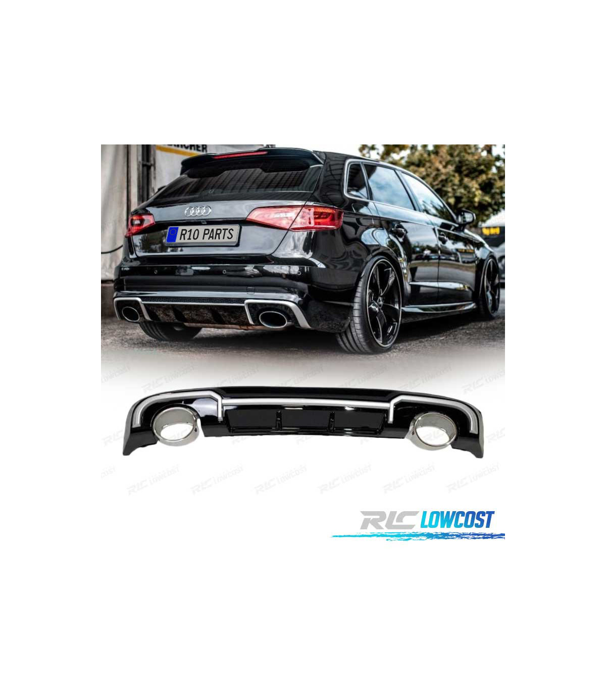 DIFFUSEUR AUDI A3 SPORTBACK 16- LOOK RS3 + EMBOUTS D´ÉCHAPPEMENT