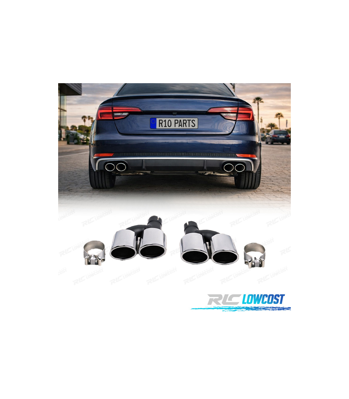 EMBOUTS D'ECHAPPEMENTS AUDI A4 16-19 LOOK S4 CHROME