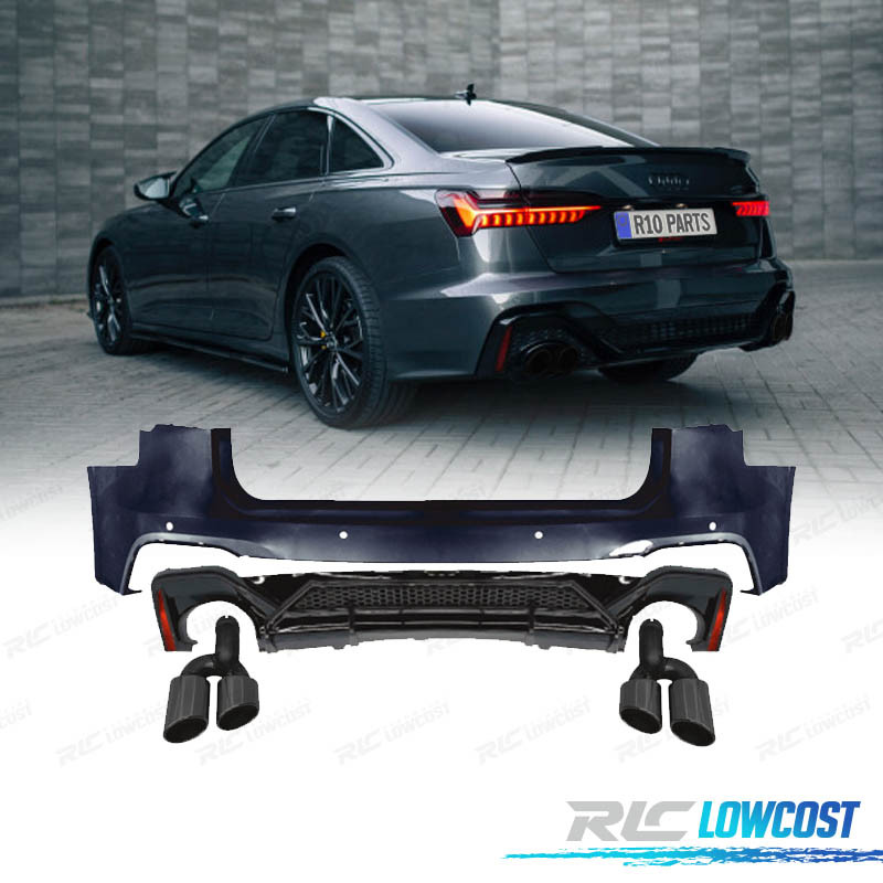 BOUCLIER ARRIÈRE AUDI A6 SEDAN 18-24 LOOK RS6 ABT EMBOUTS D'ÉCHAPPEMENT NOIR BRILLANT