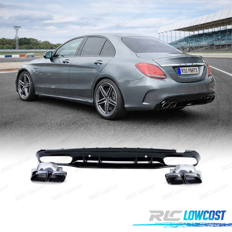 DIFFUSEUR MERCEDES CLASSE C W205 BERLINE 18-21 LOOK AMG NOIR BRILLANT +EMBOUT D´ÉCHAPPEMENT