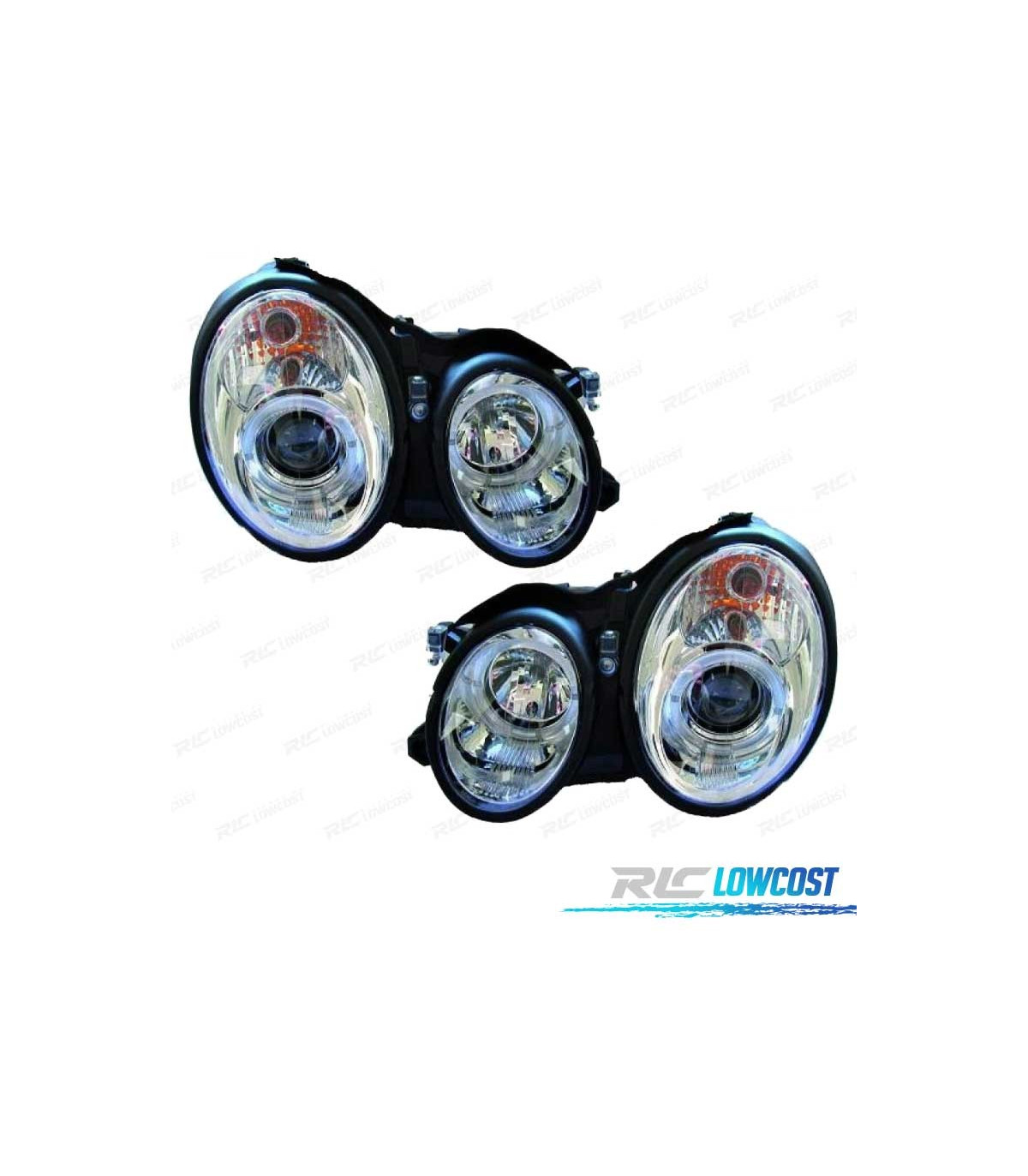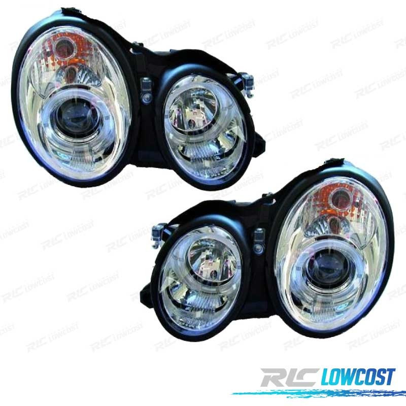 PHARES MERCEDES CLASSE E W210 95-99 ANGEL EYES FOND CHROMÉ