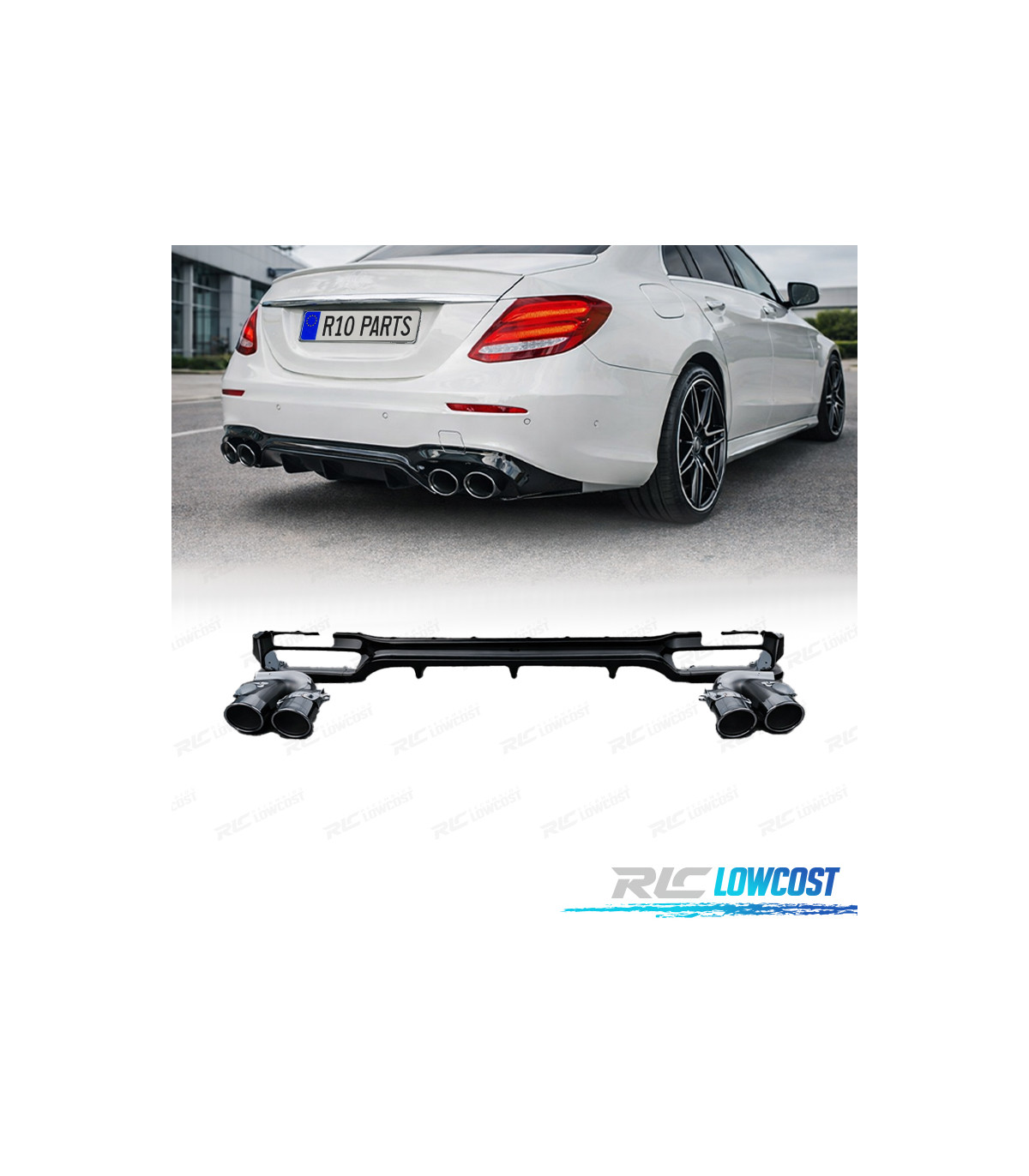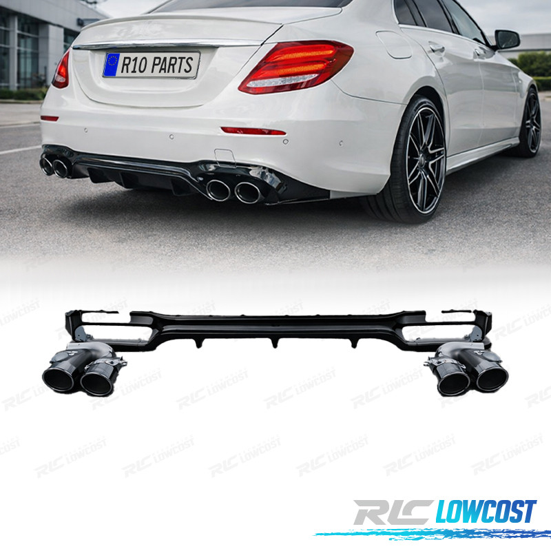 DIFFUSEUR MERCEDES CLASSE E W213 SEDAN 16-19 LOOK AMG E53 NOIR BRILLANT + SORTIES D'ÉCHAPPEMENT