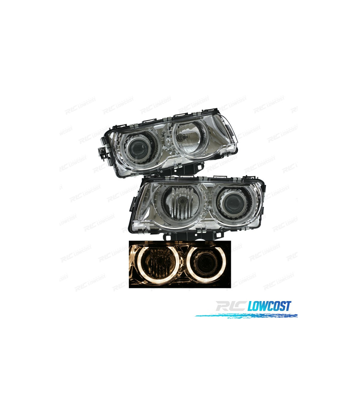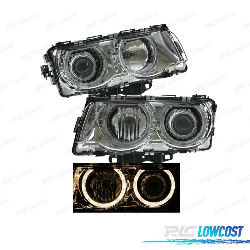 PHARES BMW SÉRIE 7 E38 94-98 YEUX D'ANGE HALOGÈNE FOND CHROME