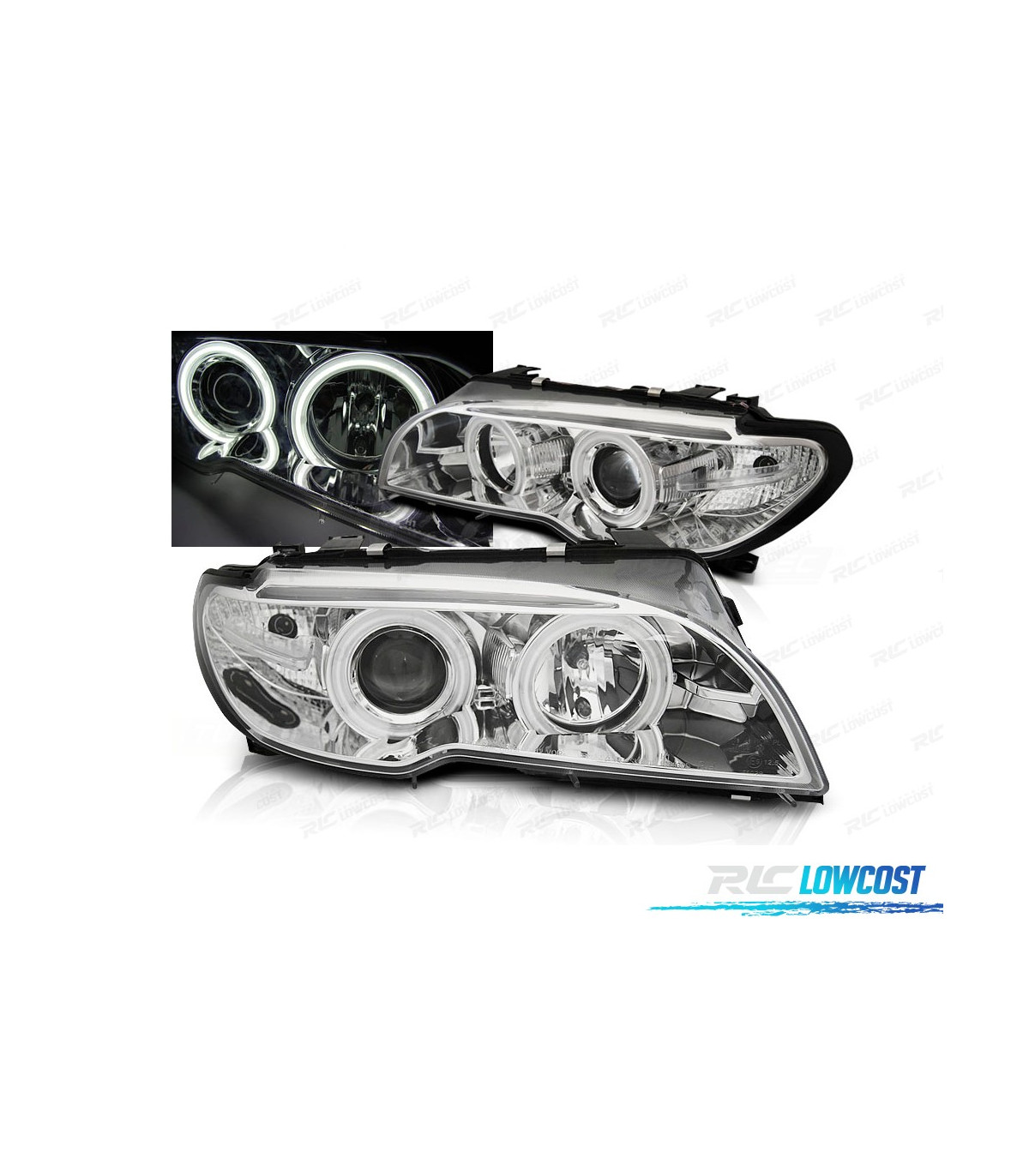 PHARES BMW E46 COUPÉ CABRIO 03-06 ANGEL EYES CCFL CHROMÉ