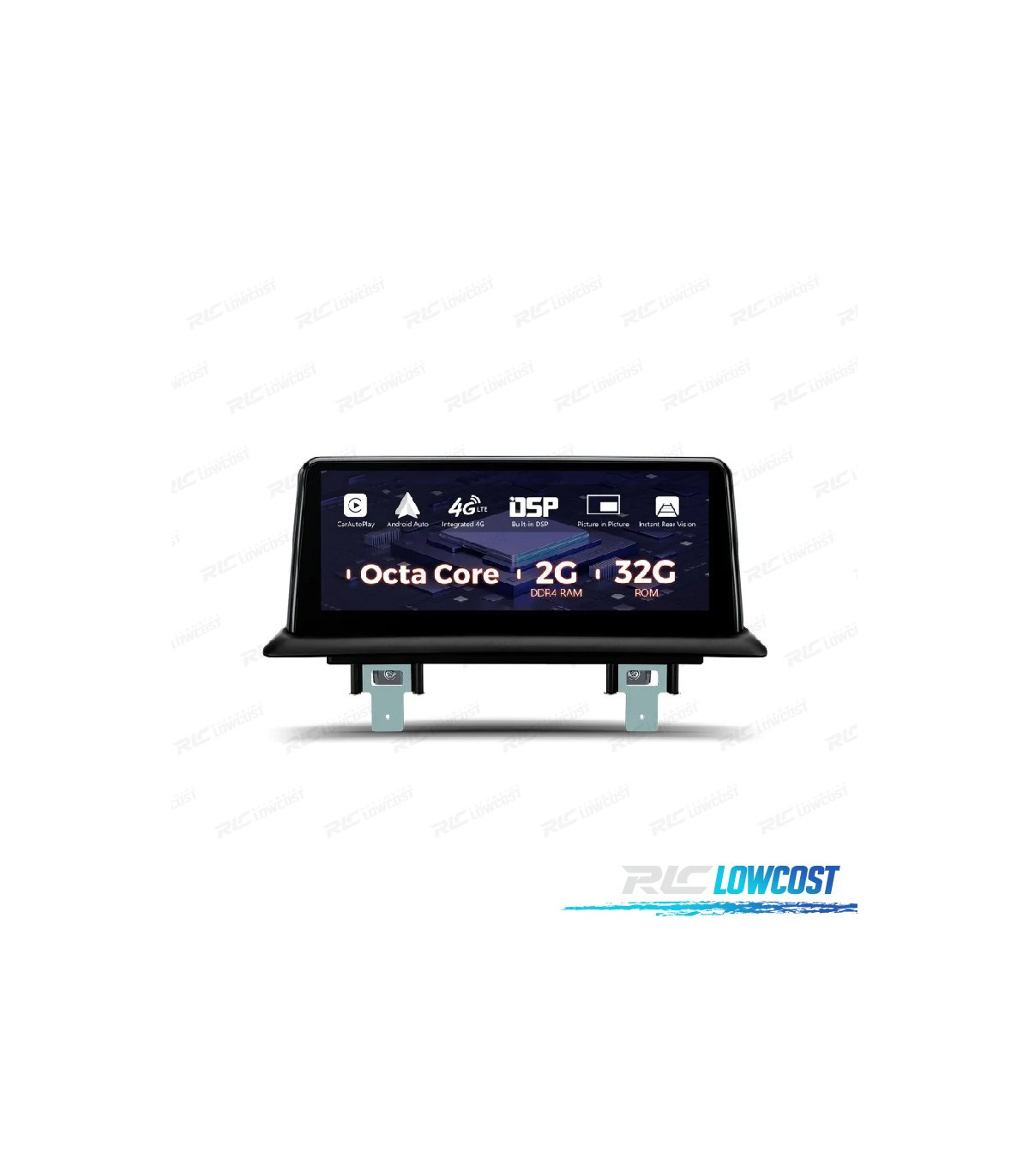 Processeur Octa-Core 64 bits Autochips 25X Pro, 2 Go de RAM externe + 32 Go de ROM Android 12, fonction d'écran, PIP, 1280 x 480 , vidéo Full HD, fente Micro sim (données 4G), 2 x USB, micro à micro. Wi-Fi double bande 2,4 et 5 GHz. DSP intégré