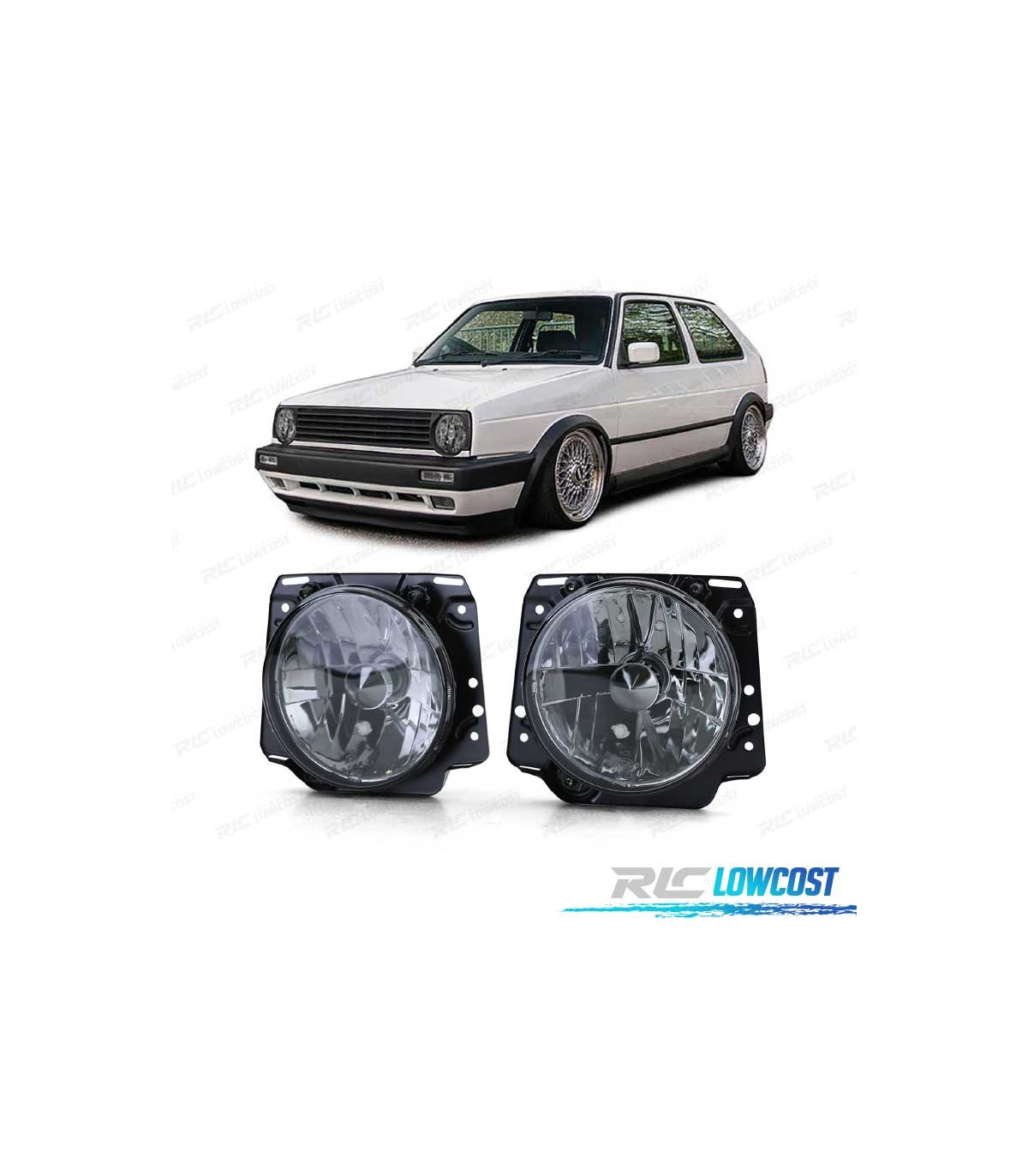 PHARES VOLKSWAGEN VW GOLF MK2 83-91 TEINTÉS FOND CHROME