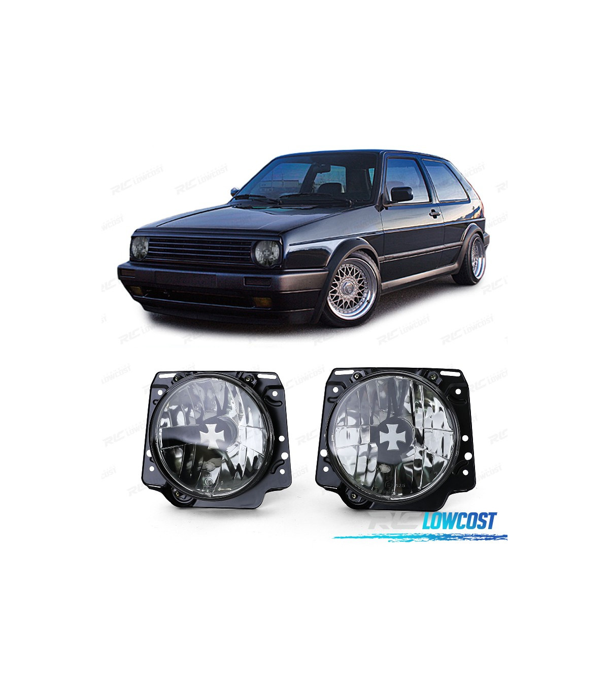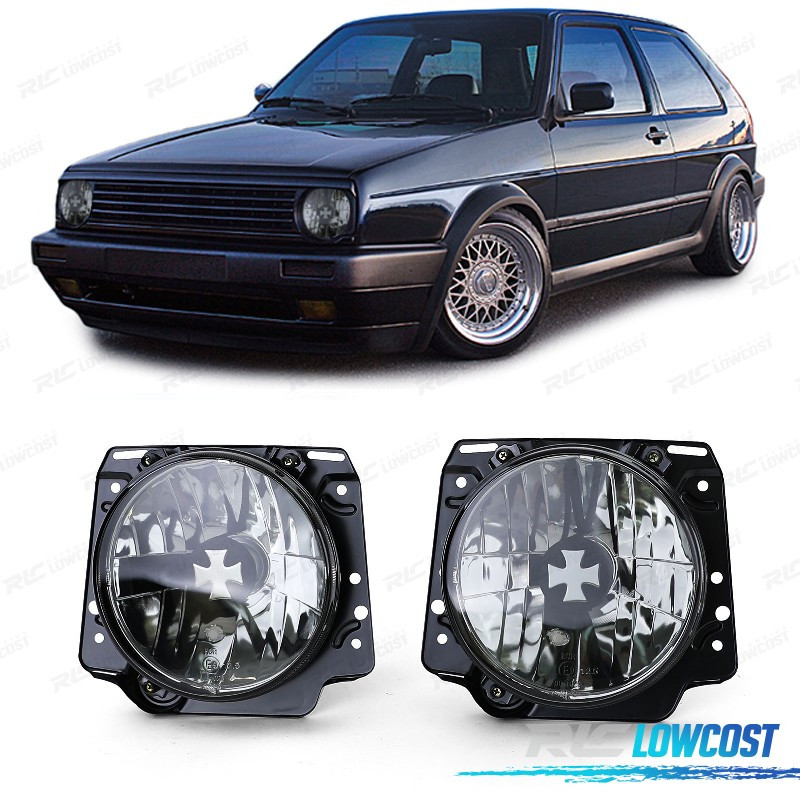 PHARES VOLKSWAGEN VW GOLF 2 83-91 IRON CROSS NOIR FUMÉ