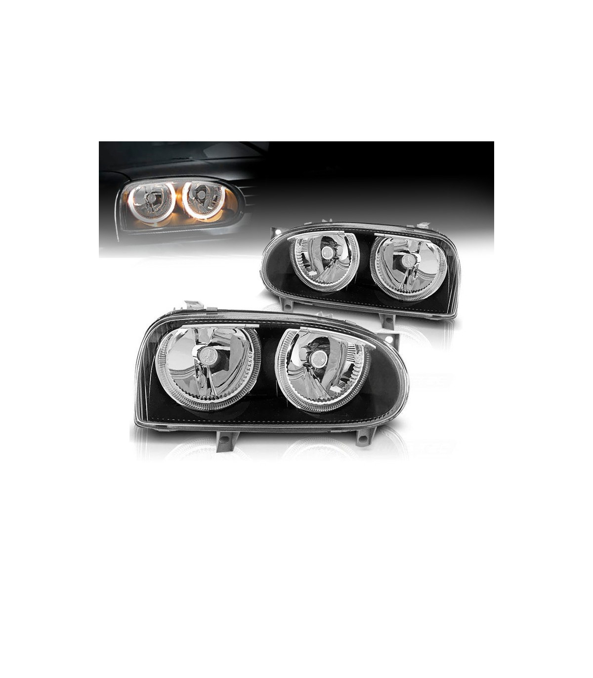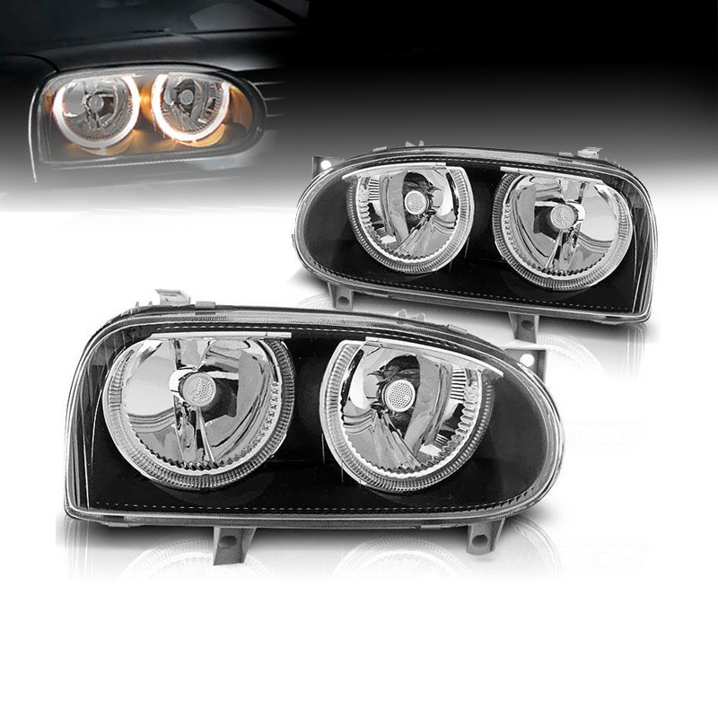 PHARES VOLKSWAGEN VW GOLF MK3 91-97 ANGEL EYES FOND NOIR H7 H7