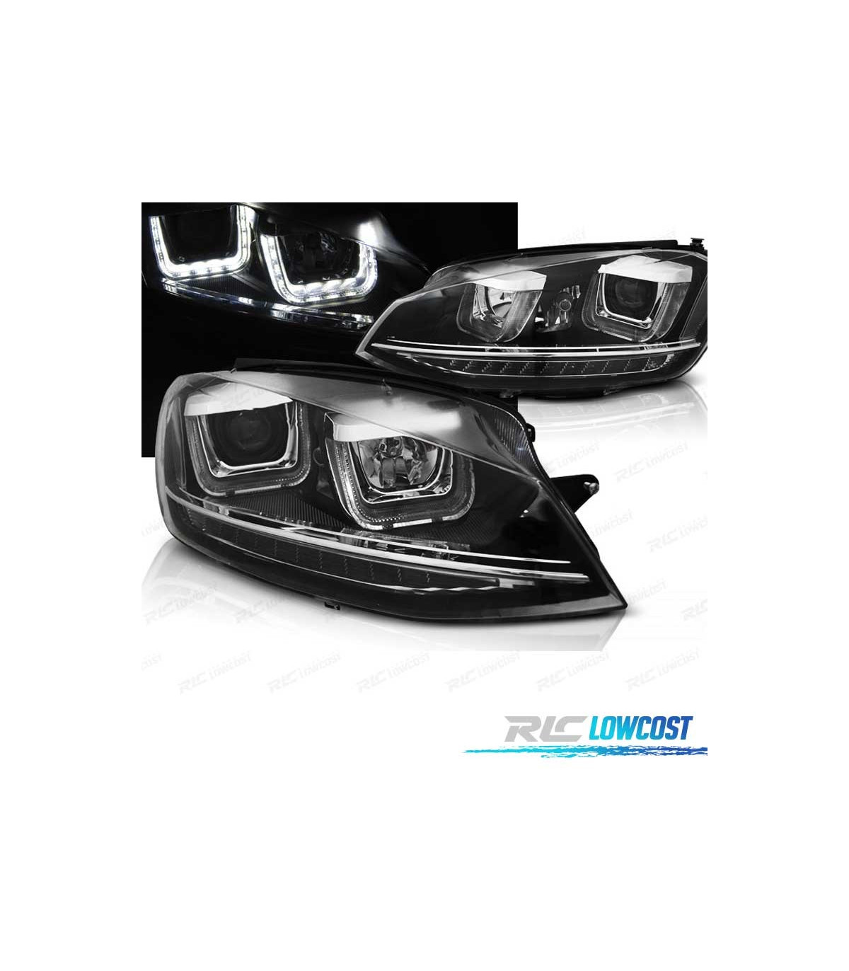 PHARES VOLKSWAGEN VW GOLF 7 12-17 U-TYPE DRL DYNAMIQUES NOIR