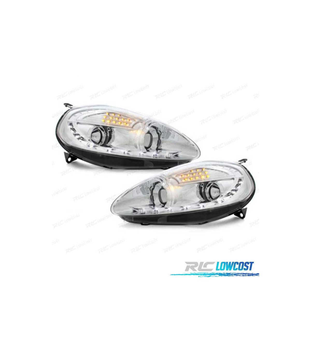 PHARES FIAT GRANDE PUNTO 05-08 FEUX DE JOUR CHROME FOND