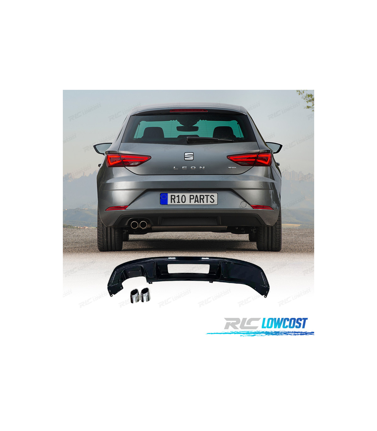 DIFFUSEUR SEAT LEON 17-20 LOOK FR NOIR BRILLANT + EMBOUTS D'ÉCHAPPEMENT