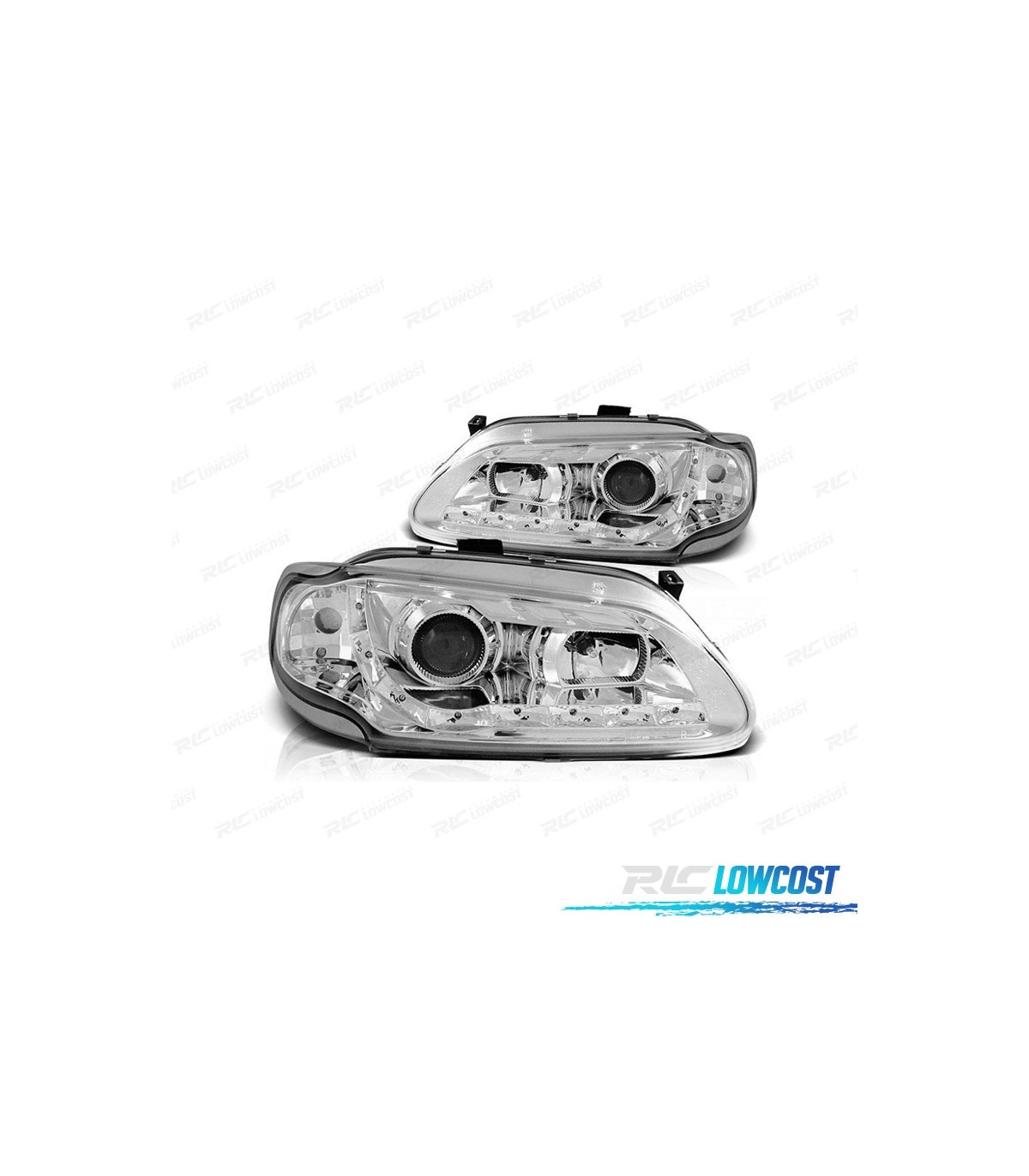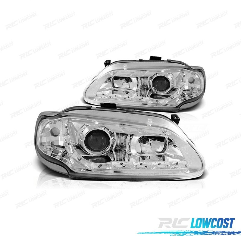 PHARES RENAULT MEGANE 96-99 FEUX DIURNES LED FOND CHROMÉ